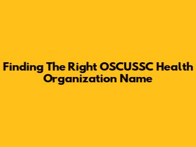 Finding The Right OSCUSSC Health Organization Name