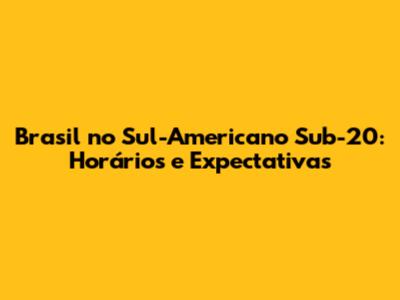 Brasil No Sul-Americano Sub-20: Horários E Expectativas
