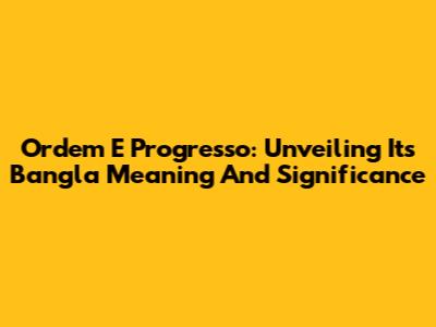 Ordem E Progresso: Unveiling Its Bangla Meaning And Significance