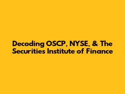 Decoding OSCP, NYSE, & Securities Institute Of Finance