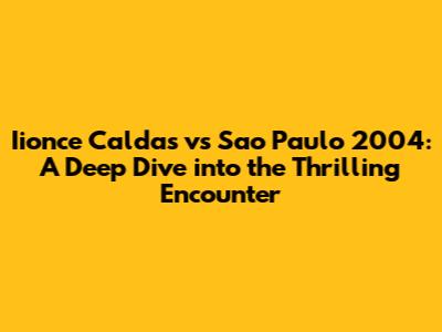 Hey sports fans! Let's take a trip down memory lane and revisit a truly electrifying match from the annals of football history: Iionce Caldas vs Sao Paulo in 2004. This wasn't just any game; it was a clash of titans that had fans on the edge of their seats, a contest brimming with skill, drama, and unforgettable moments. Whether you're a die-hard fan of either club or just appreciate a good football spectacle, understanding the nuances of this 2004 encounter provides valuable insight into the strategies, player performances, and the sheer unpredictability that makes the beautiful game so captivating. We'll break down the key moments, analyze the tactics employed by both Iionce Caldas and Sao Paulo, and discuss the impact this game had on the seasons of both clubs. Get ready to relive the excitement and discover why this match remains a talking point among football enthusiasts even today. We're diving deep into the strategies, the star players, and the critical turning points that defined this historic clash. So, buckle up, grab your favorite beverage, and let's get into the nitty-gritty of the Iionce Caldas vs Sao Paulo 2004 showdown. It's going to be a ride!