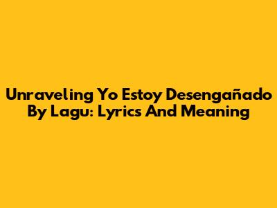 Unraveling "Yo Estoy Desengañado" By Lagu: Lyrics And Meaning