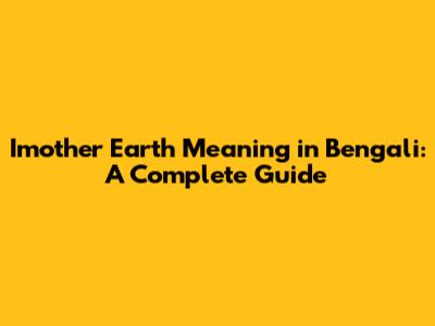Imother Earth Meaning In Bengali: A Complete Guide