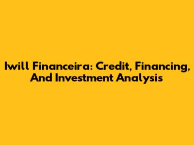 Iwill Financeira: Credit, Financing, And Investment Analysis