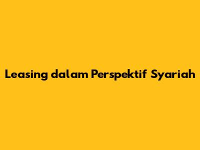 Leasing Dalam Perspektif Syariah