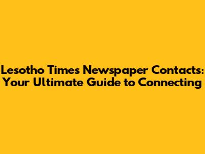 Lesotho Times Newspaper Contacts: Your Guide To Connecting
