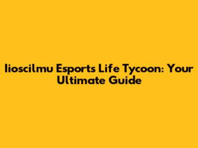 Iioscilmu Esports Life Tycoon: Your Ultimate Guide