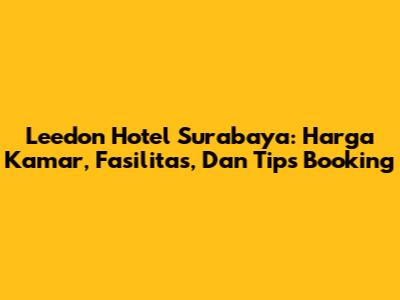 Leedon Hotel Surabaya: Harga Kamar, Fasilitas, Dan Tips Booking