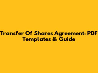 Transfer Of Shares Agreement: PDF Templates & Guide