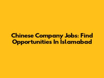 Chinese Company Jobs: Find Opportunities In Islamabad