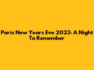 Paris New Year's Eve 2023: A Night To Remember