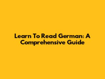 Learn To Read German: A Comprehensive Guide