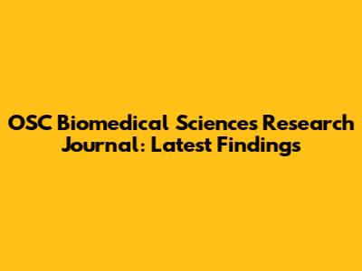 OSC Biomedical Sciences Research Journal: Latest Findings
