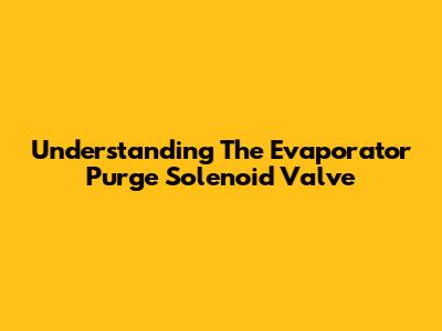 Understanding The Evaporator Purge Solenoid Valve