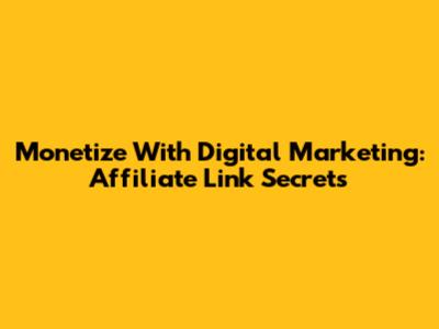 Monetize With Digital Marketing: Affiliate Link Secrets