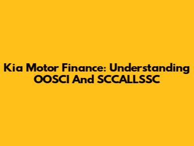 Kia Motor Finance: Understanding OOSCI And SCCALLSSC