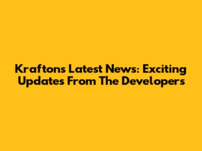 Krafton's Latest News: Exciting Updates From The Developers