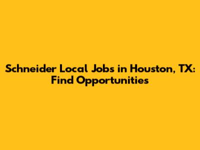 Schneider Local Jobs In Houston, TX: Find Opportunities