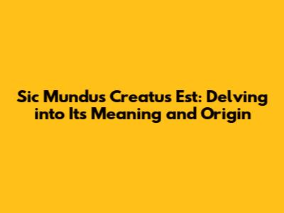 Sic Mundus Creatus Est: Understanding Its Meaning And Origin