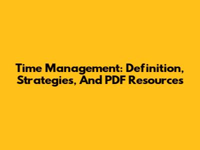 Time Management: Definition, Strategies, And PDF Resources