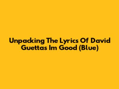 Unpacking The Lyrics Of David Guetta's 'I'm Good (Blue)'