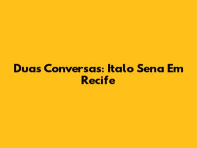 Duas Conversas: Italo Sena Em Recife