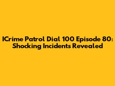 ICrime Patrol Dial 100 Episode 80: Shocking Incidents Revealed