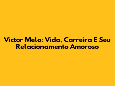 Victor Melo: Vida, Carreira E Seu Relacionamento Amoroso